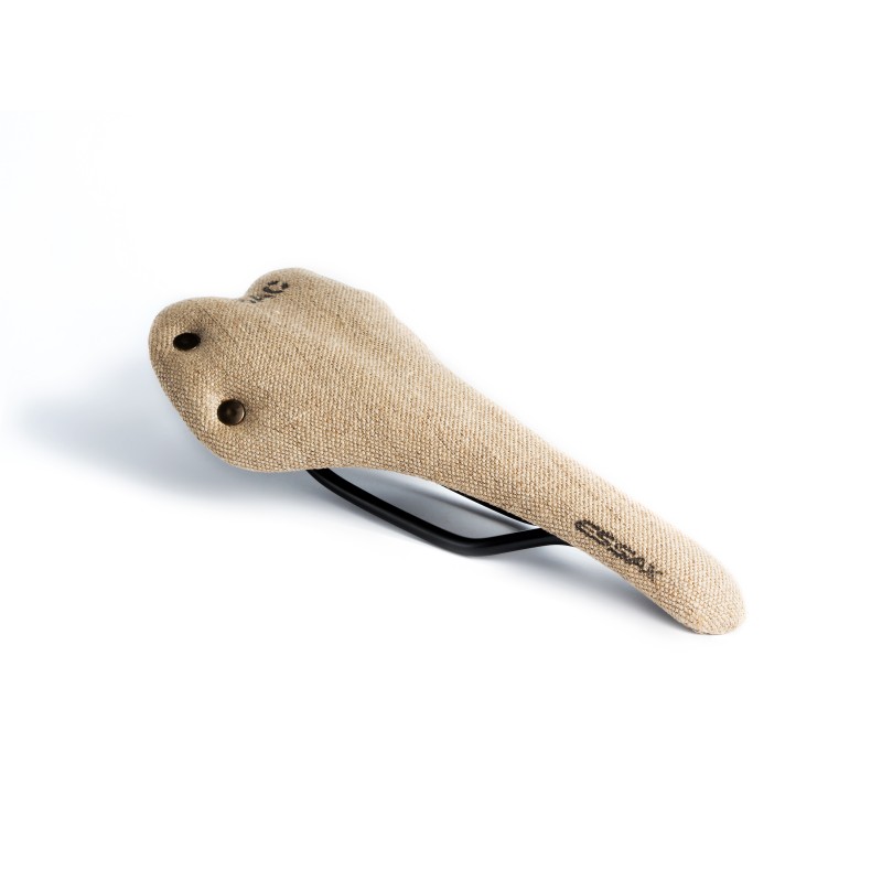 Forro de saco, remaches, grabados a fuego…todo un homenaje al diseño post industrial, en un sillín urbano con carácter propio.